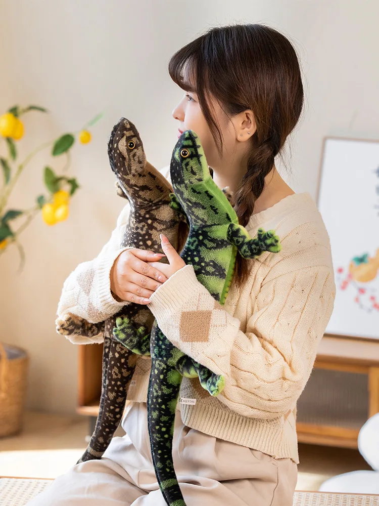 75cm Simulated Reptile Lizard Doll Plush Toy Wild Animal Long Tail Brown Green Plushie Peluche Boys Girls Men Gift